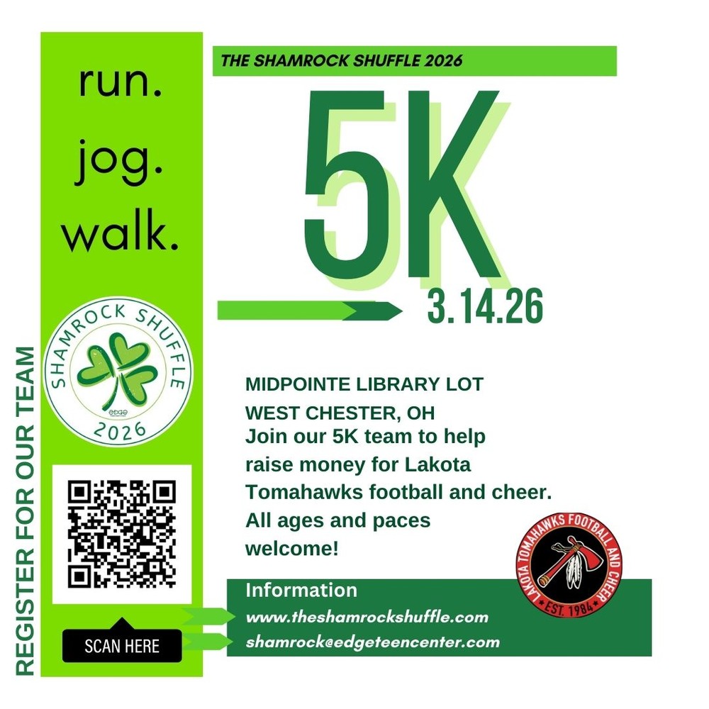 Weโ€™d love to see you lace up your sneakers and join the Lakota Tomahawks team for this fun, family-friendly community event. All ages and paces are welcome โ€” whether youโ€™re running, jogging, or walking!