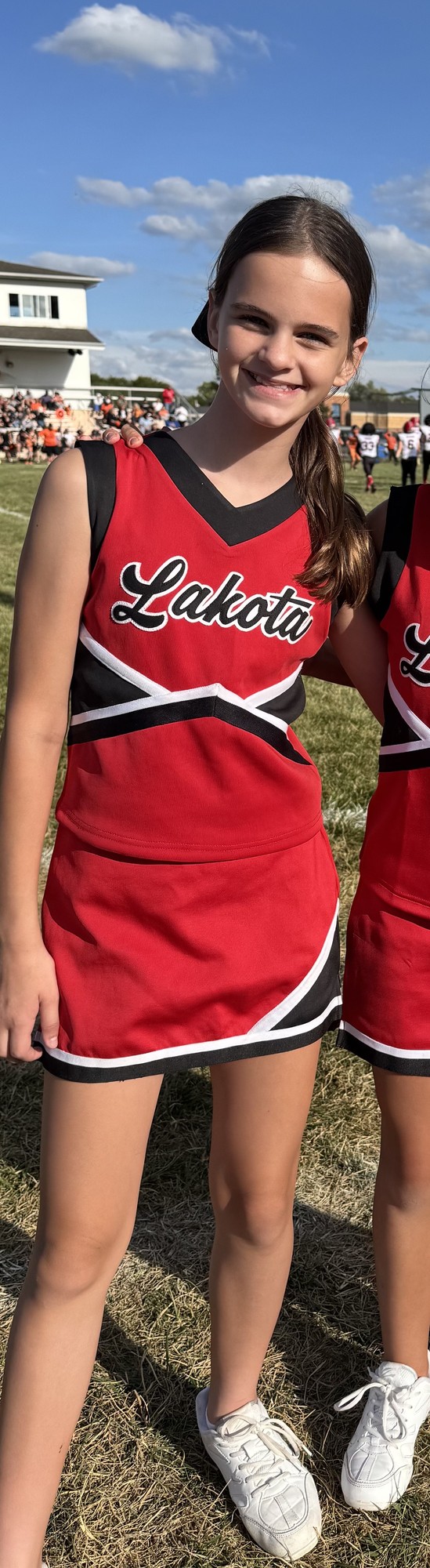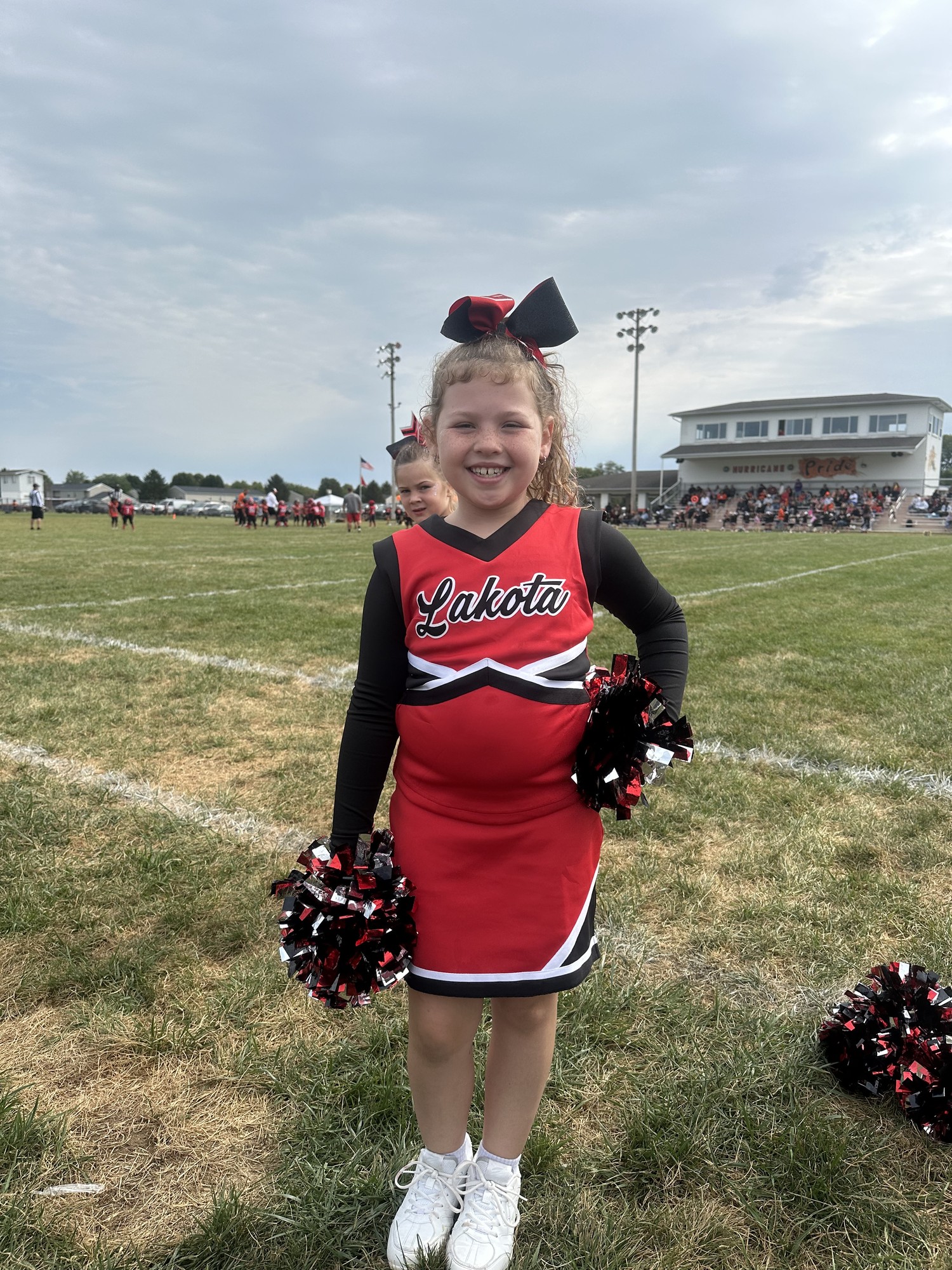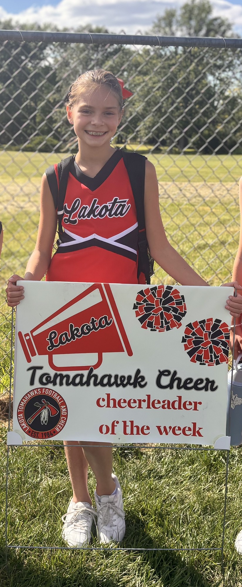 This is Piper's 2nd season with our squad. She has really come out of her shell this year. At our game, she cheered loud and proud!! Piper is a great cheerleader and team mate! She definitely brought the spirit this week!! Go Tomahawks!!