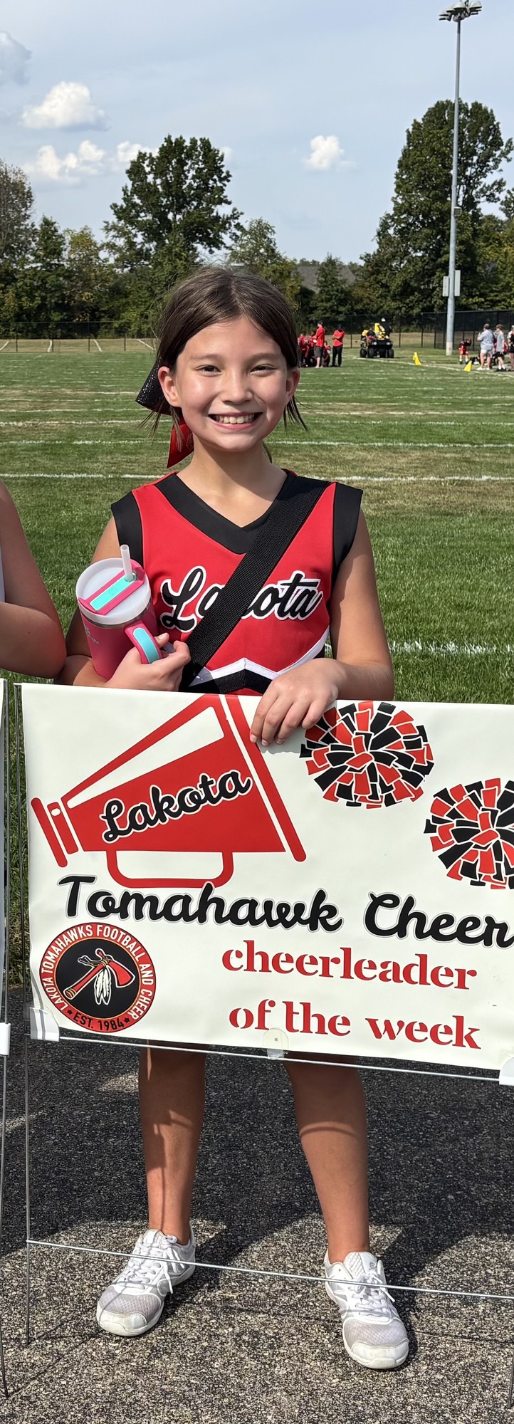 We’re so excited to spotlight Stella Wood, our amazing Cheerleader of the Week! With a bright smile, a kind heart, and tons of spirit, Stella brings energy and positivity to every cheer practice. Whether she’s teaching us new cheers or working hard to perfect her skills, she always gives it her all. Keep shining, Stella! We’re so proud of you!