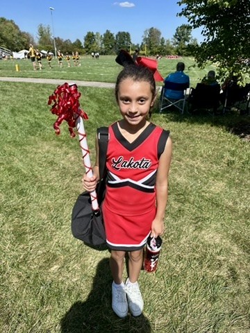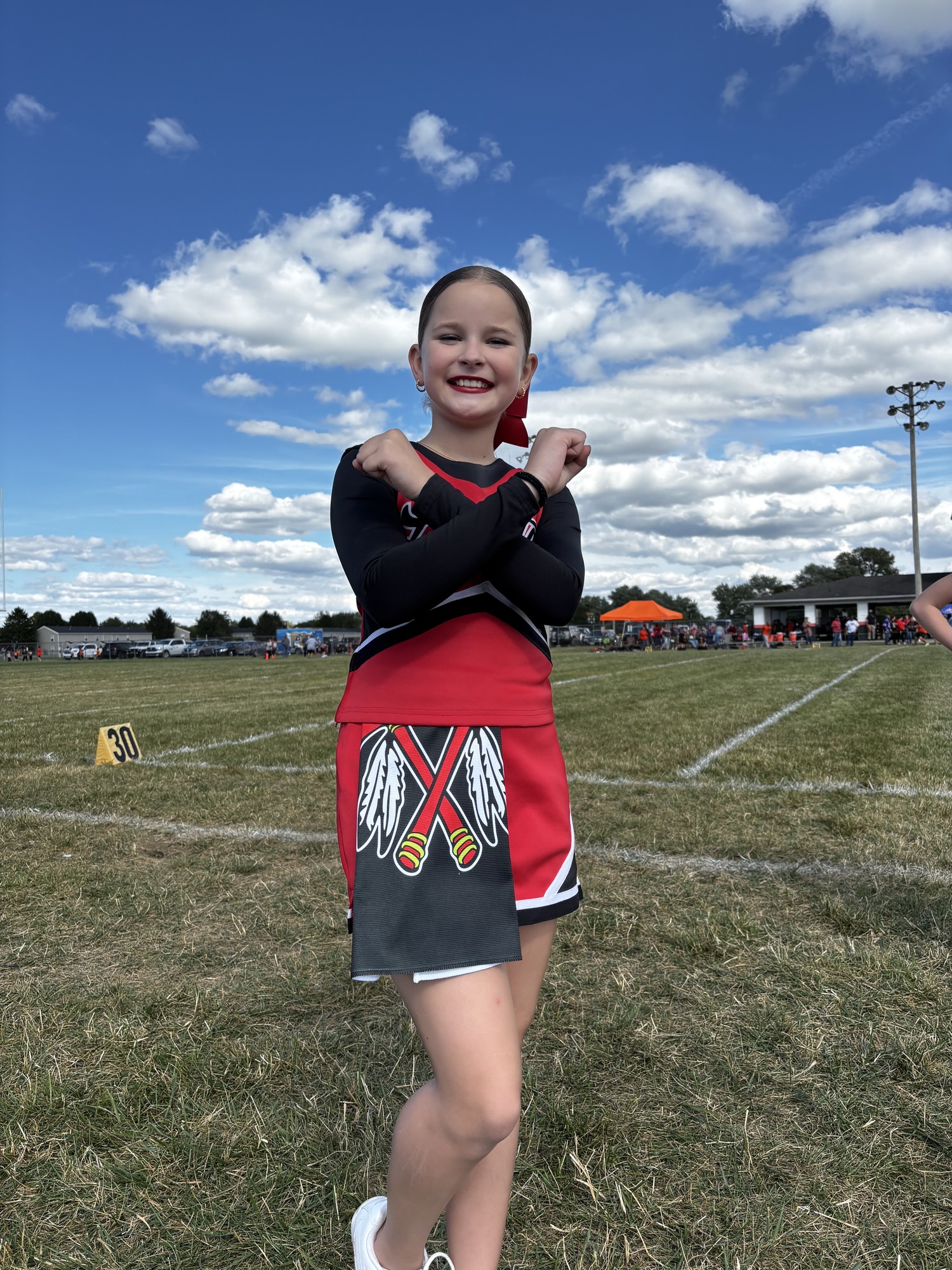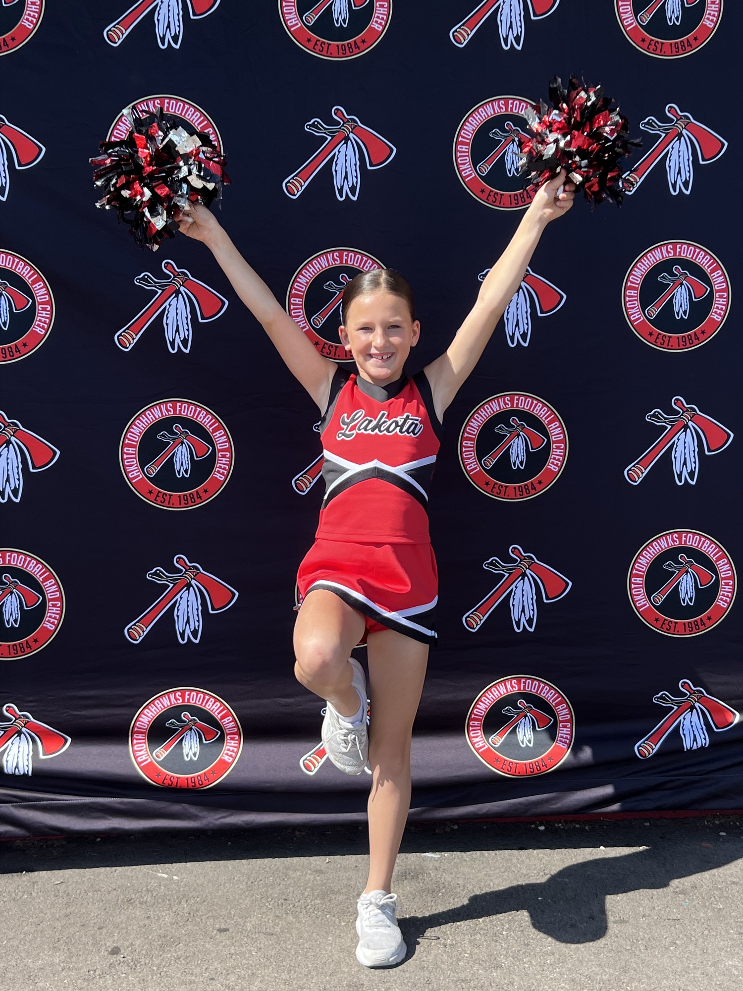 She is one of just three girls who has been with The Tomahawk Cheer Red pod since kindergarten, and her dedication shines through.