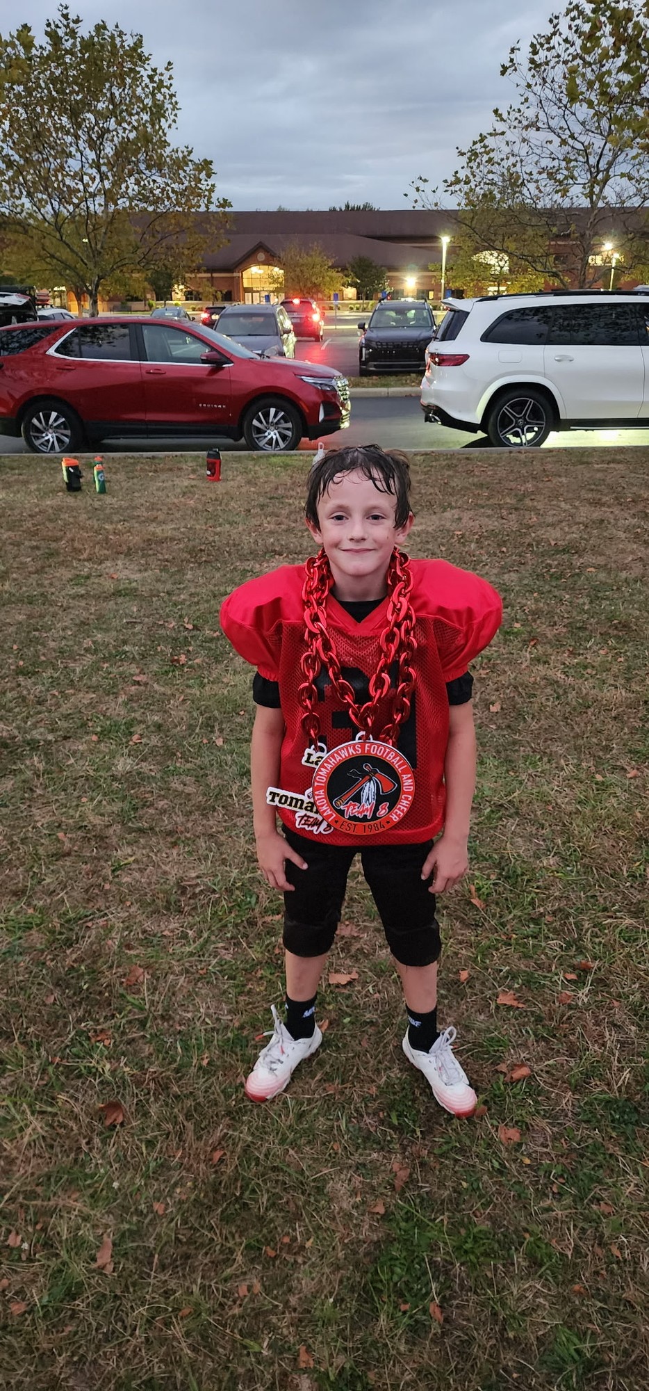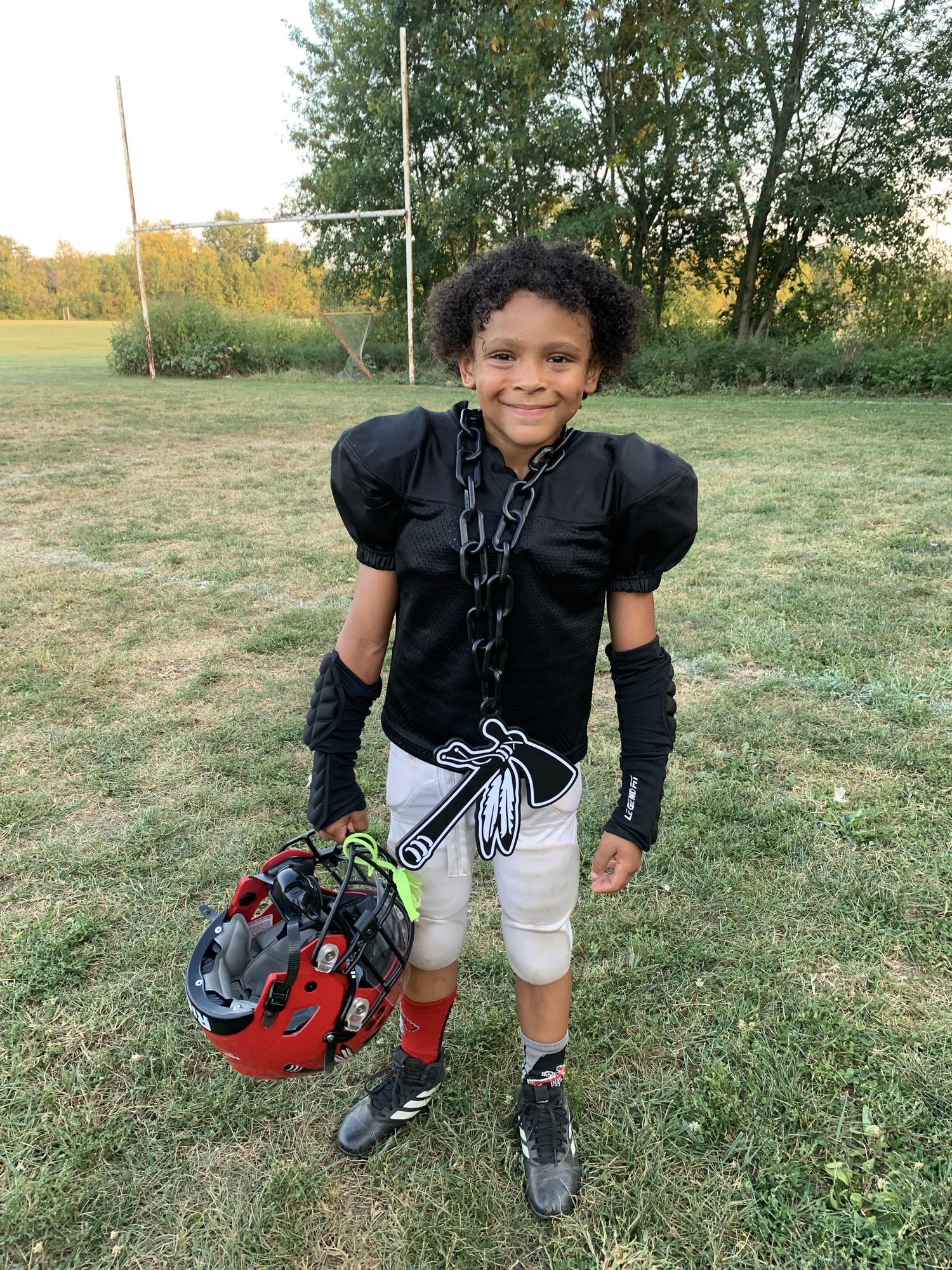AJ has improved every week. This past weekend he had an amazing 30 yard reception on offense and multiple tackles on defense. AJ is an eager athlete who wants to learn and get better. We are excited to see how far his good attitude takes him with our team moving forward. Go AJ!
